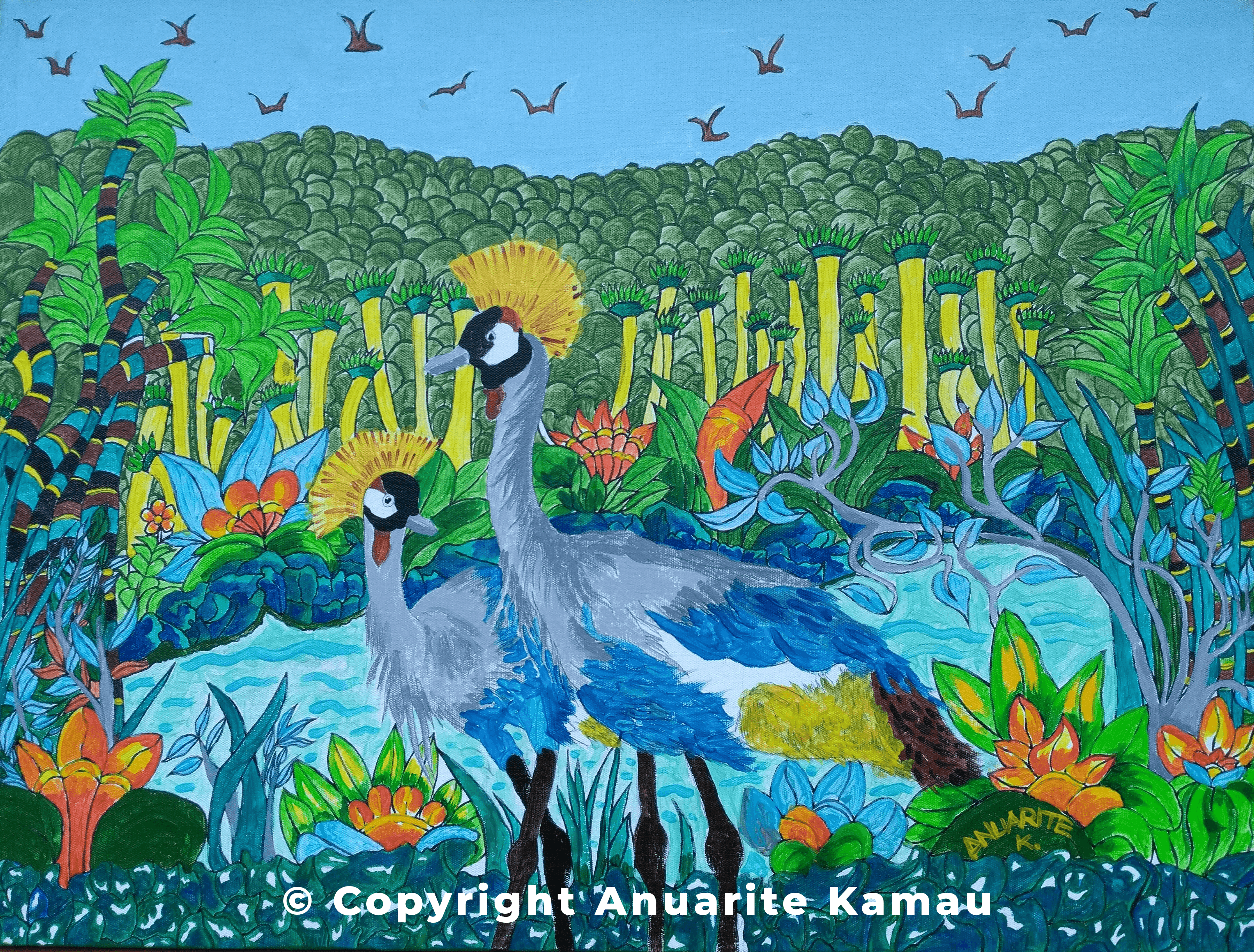 - 2. Crested Crane Paradise Painting