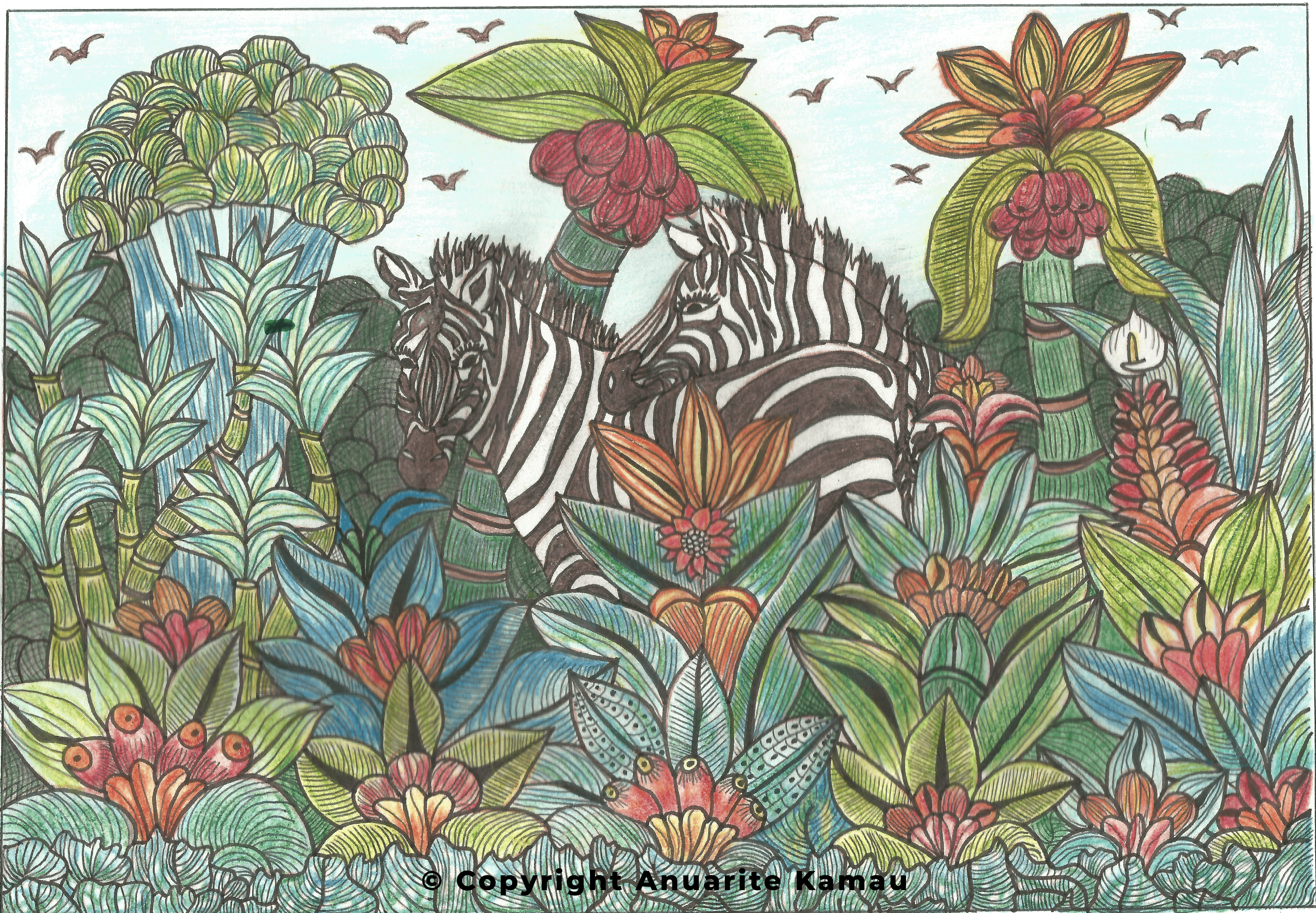 - 2. Crested Crane Paradise (Pencil Colour, Colour Script)