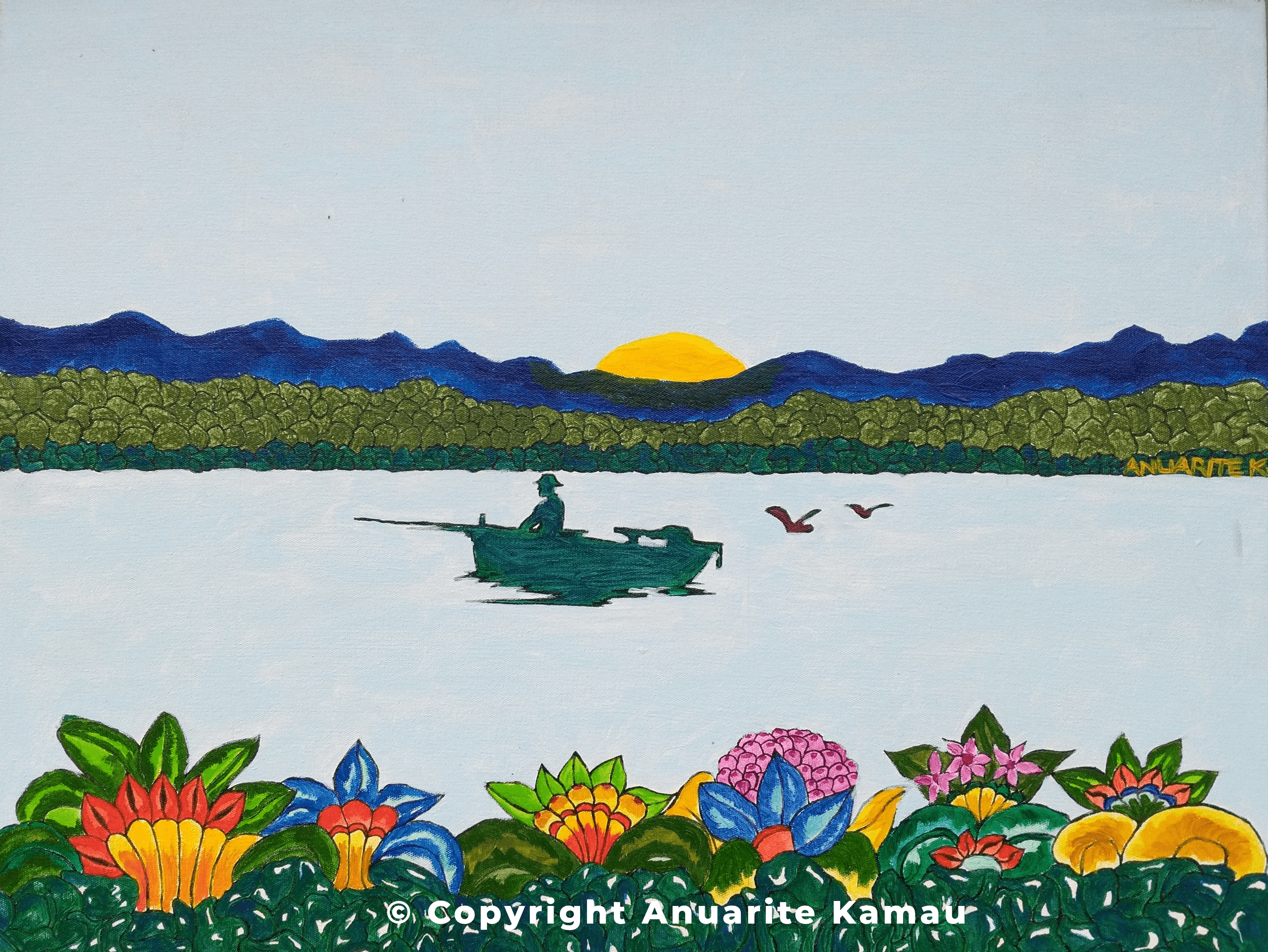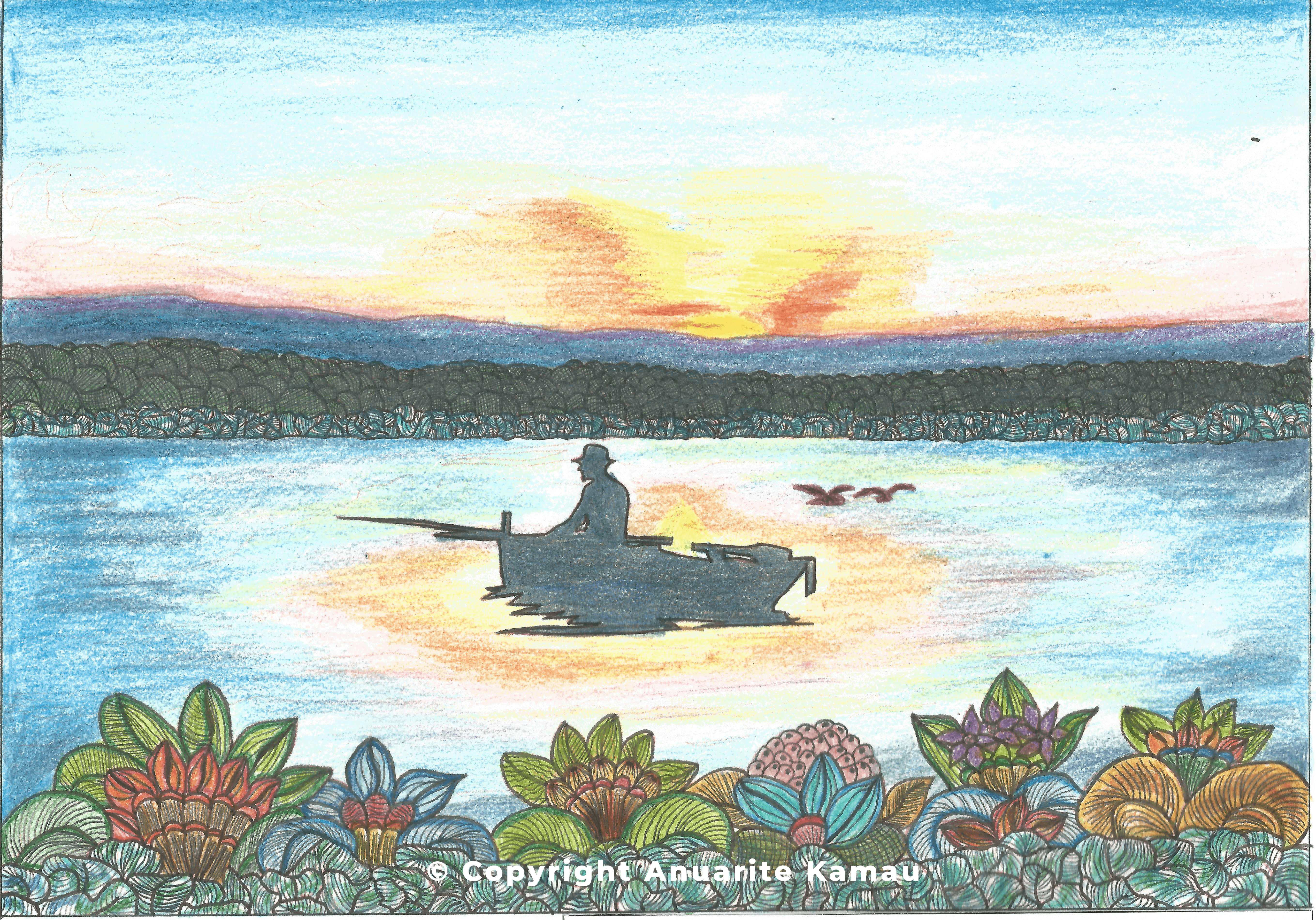 - 3. Sunset at Lake Victoria (Pencil Colour, Coulour Script)